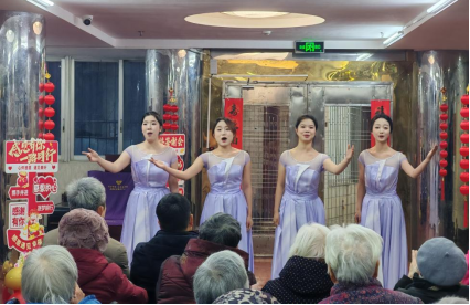 上午,福利院活动室内暖意融融。志愿者们充分发挥专业特长,为老人们呈现了一场精彩纷呈的演出。轻盈优美的舞蹈《飞鸟髻》拉开序幕,陈佳怡的翩跹舞姿引来阵阵掌声;杨忠涛深情演唱《在那桃花盛开的地方》,唤起往日回忆;李佳语以舞蹈《听过去的故事》诉说岁月温情;辛泊翰一曲《草原上升起不落的太阳》,将听众带入辽阔意境。随后,李梦怡的《萨乌尔登礼赞》舞出民族风情,孟庆博铿锵演唱《小白杨》,何晓艳则以舞蹈《泥土可以芬芳》礼赞生命。最后,汤蕙绮等四人小组唱《映山红》,和谐动人的和声将气氛推向高潮,不少老人轻声跟唱,饱含激情。