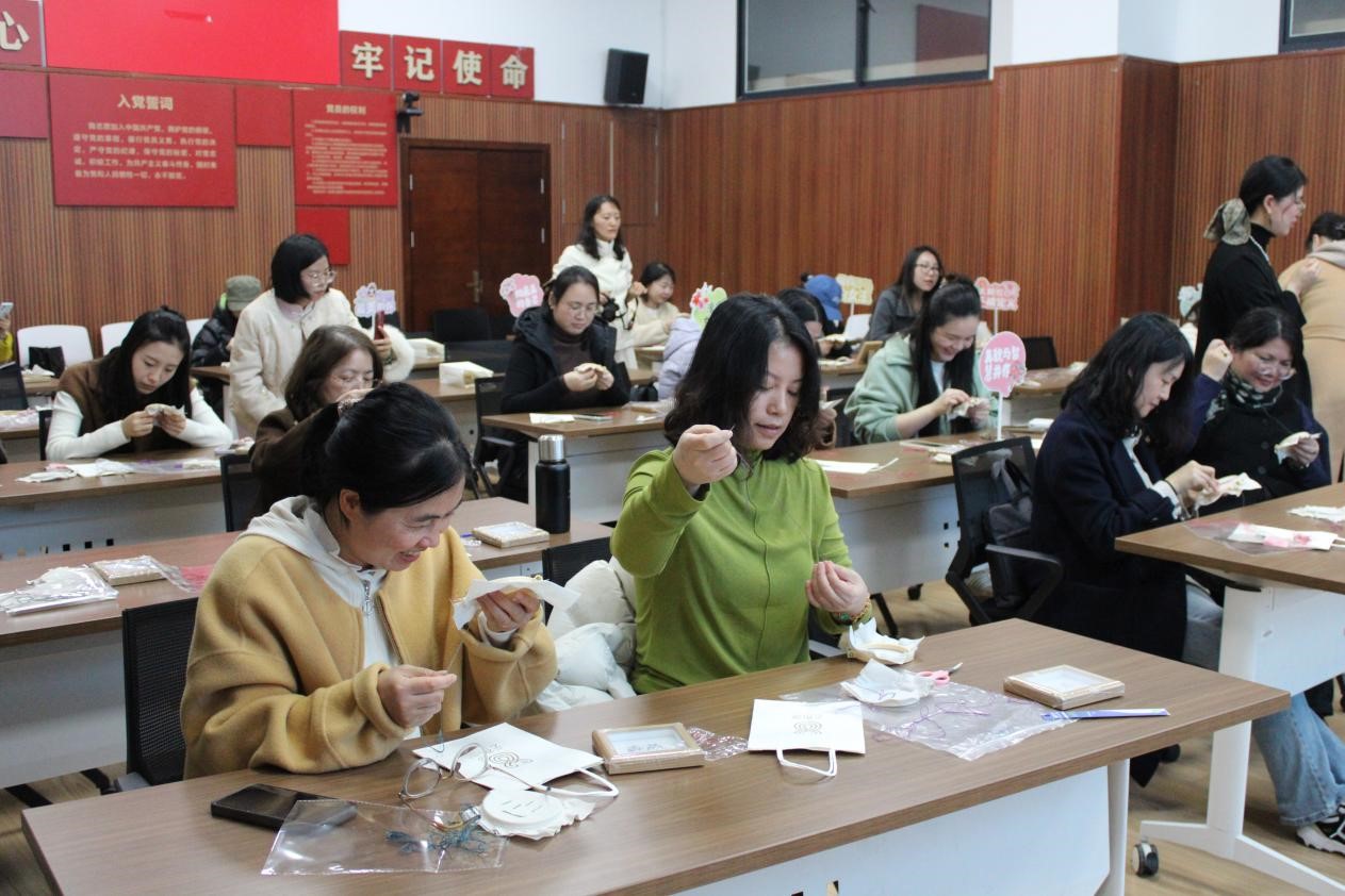 女教职工们学习了女书文化和刺绣技艺,更在亲手创作中放松了身心,感受了传统手工艺的精妙与温度,为这个属于女性的节日增添了一份别样的文化雅趣。