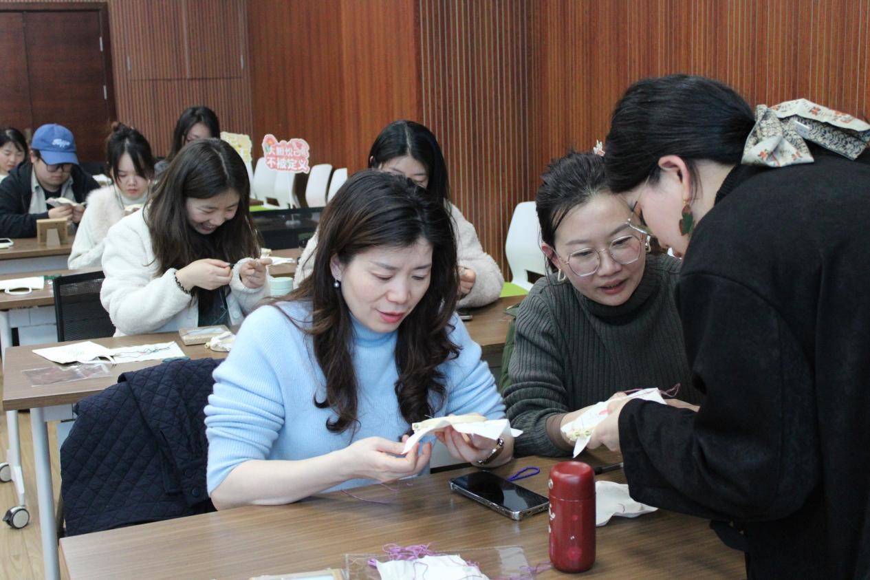女教职工们学习了女书文化和刺绣技艺,更在亲手创作中放松了身心,感受了传统手工艺的精妙与温度,为这个属于女性的节日增添了一份别样的文化雅趣。